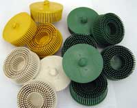 Круги Roloc Bristle на пластиковой основе с пропиткой абразивным составом изготовлены методом литья под давлением и позволяют эффективно и без риска травмирования удалить ржавчину, краску, покрытия и герметики с металлических поверхностей. Круги особенно эффективны в труднодоступных зонах и обеспечивают особо глубокую и качественную очистку. Рекомендуется использовать круги Bristle с Г-образной зачистной машинкой на скоростях от 12.000 до 18.000 об./мин. исключительно на тарелках-держателях ЗМ Roloc Bristle.