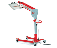 Данная модель мощностью 3 кВт. оснащена таймером, что значительно упрощает работу. Принципиальное отличие ИК-сушек состоит в том, что микроволновое излучение прогревает покрытие изнутри наружу. Оно свободно проникает сквозь покрытие до металла. Это обеспечивает полное испарение растворителей и продуктов реакции.
