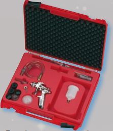 Дизайнерский набор SATAminijet 3000 B HVLP Design Set содержит краскопульт и все важные запчасти к нему для удобства в работе. От наливного и вставного бачка для быстрой смены напыляемого материала, до воздушного шланга длиной 2 метра - все это в удобном чемодане.